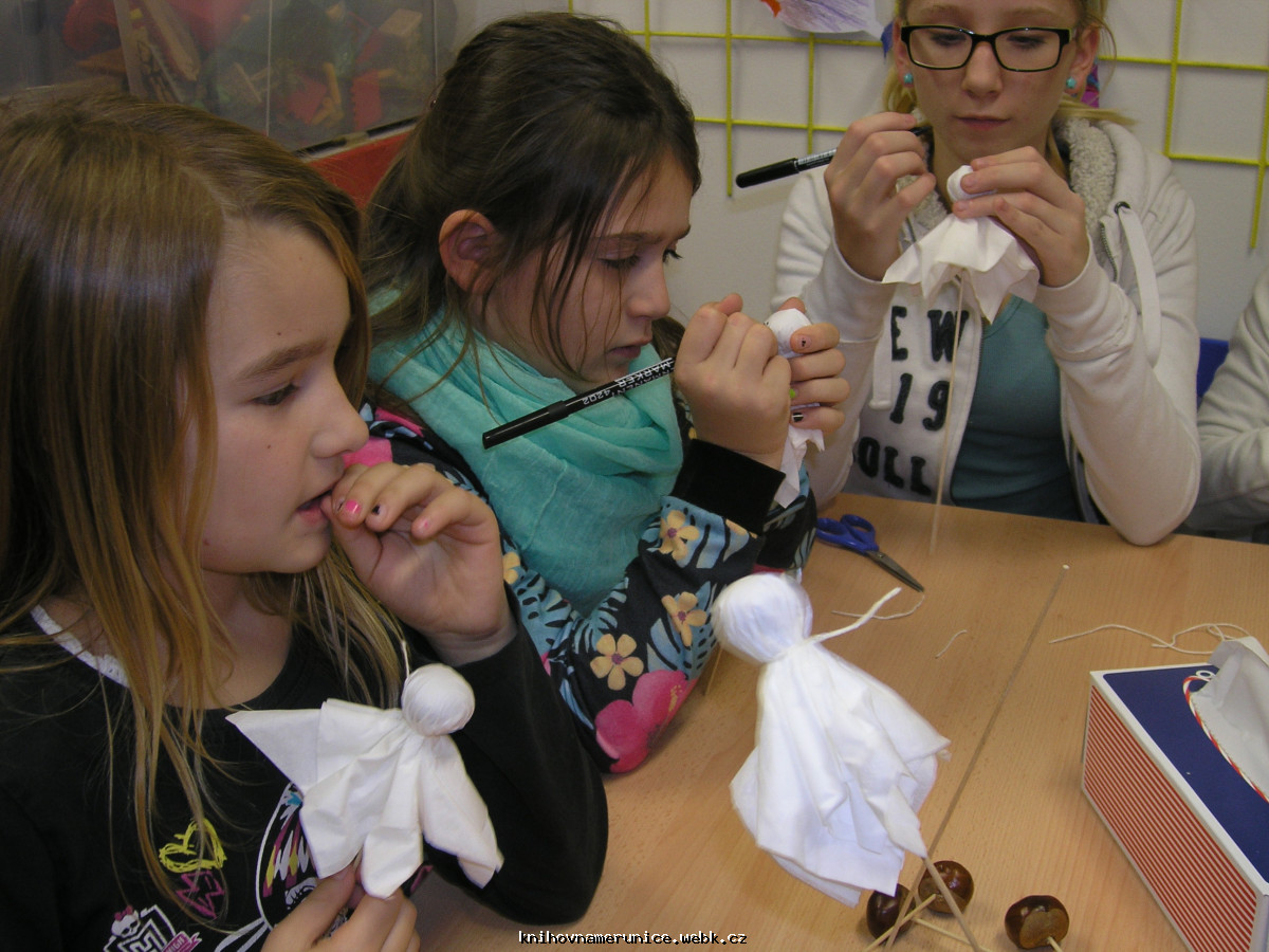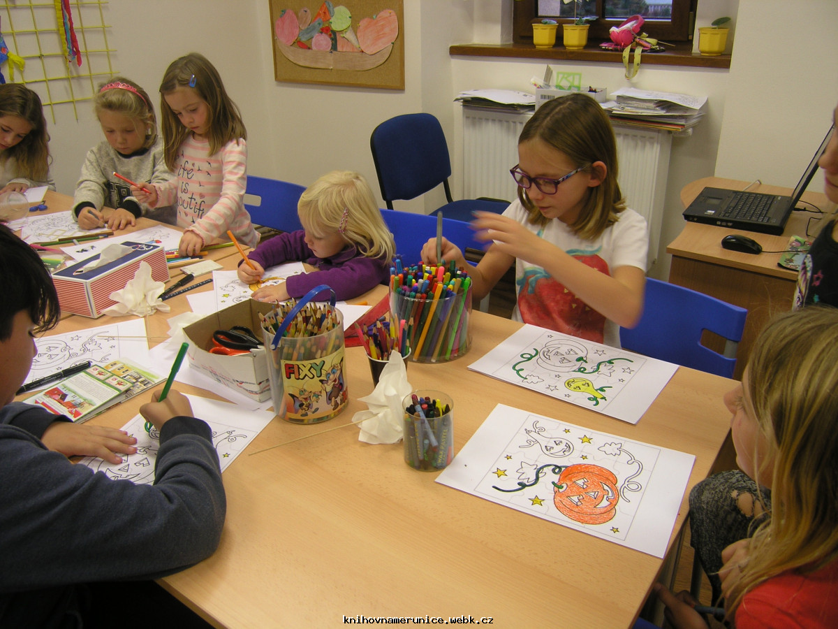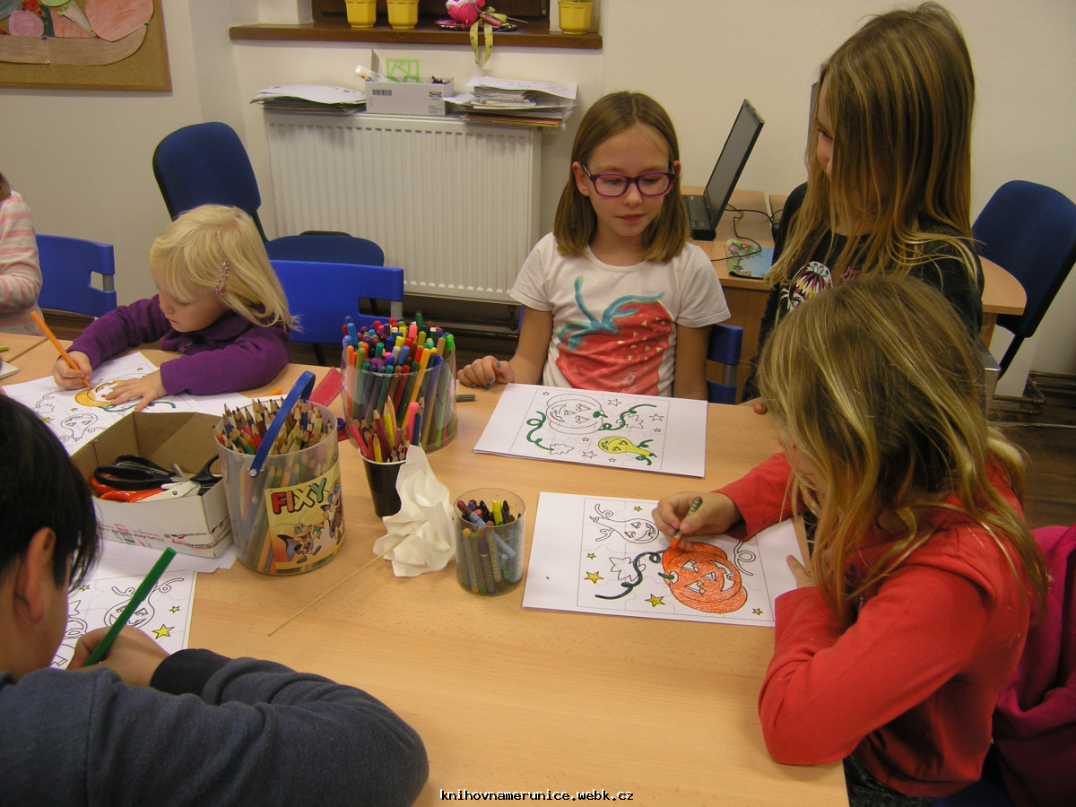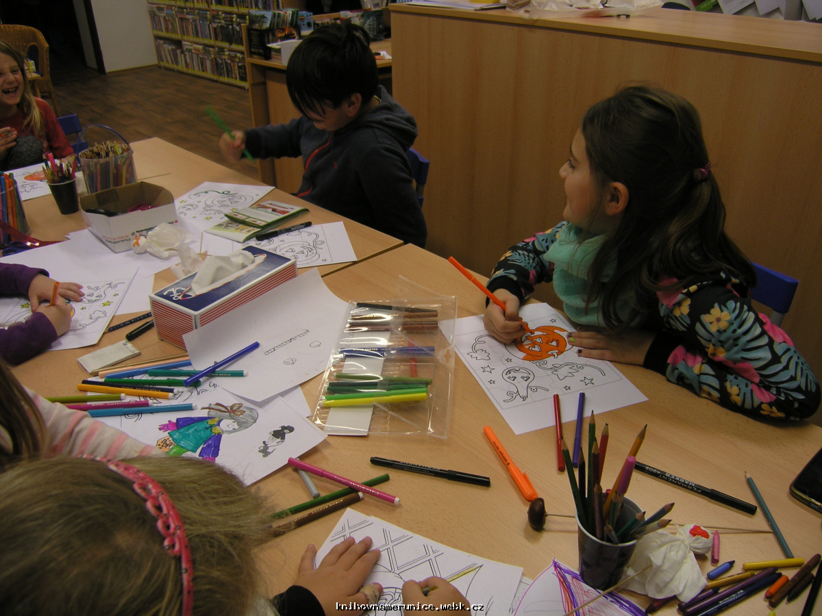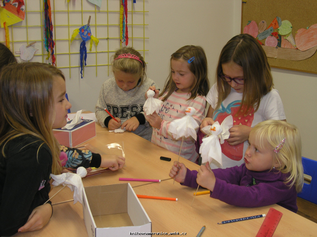 24. října děti vyráběly strašidla na Halloween. Z kaštanu a papírového kapesníku vytvořily ducha, kterému fixami namalovaly strašidelný obličej. Sami si ještě vybarvily puzzle s halloweenskou tématikou.