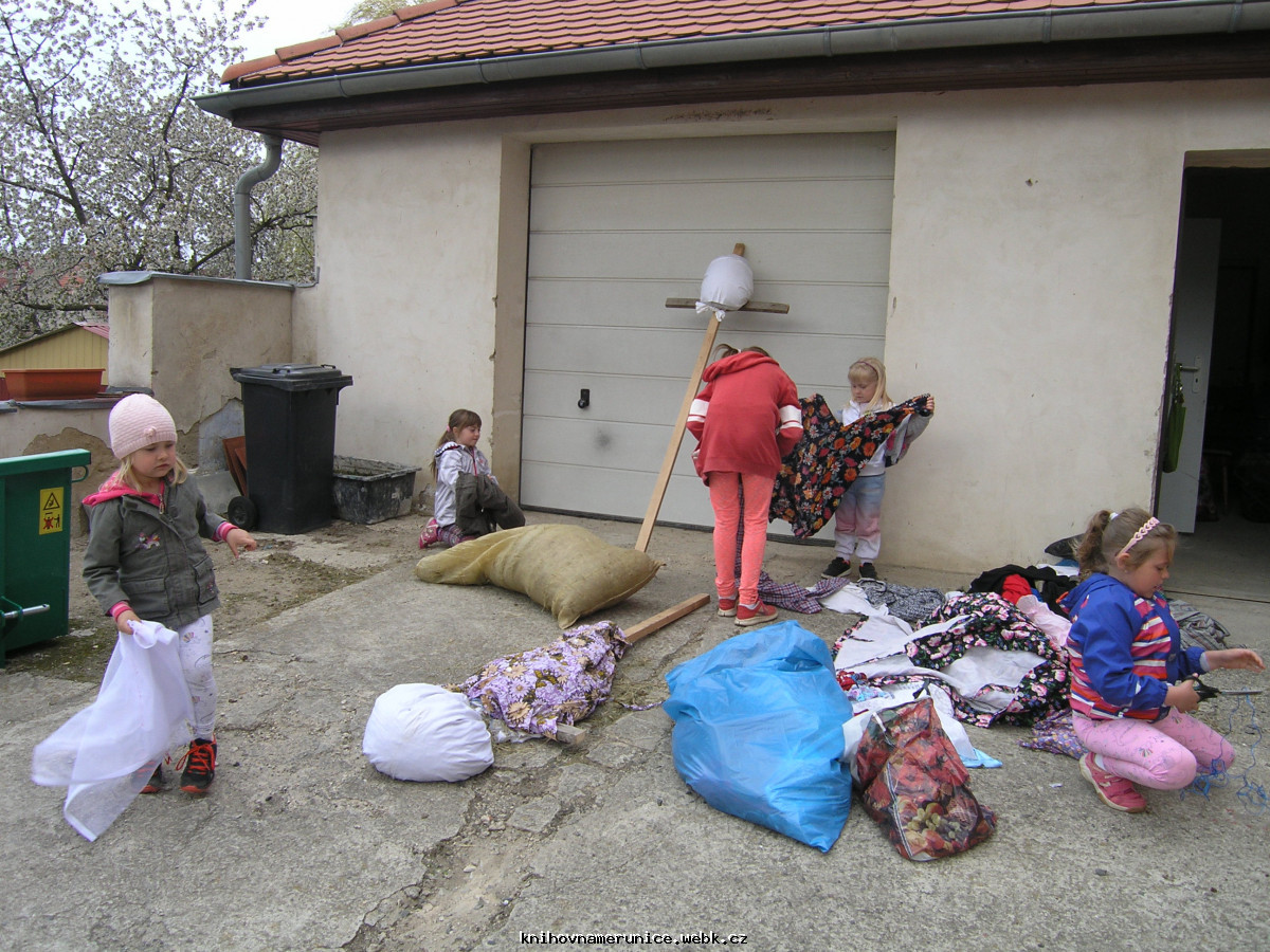 23. dubna děti postavily u garáže Obecního úřadu tři čarodějnice na pálení čarodějnic. Staré oblečení vycpaly senem a obličeje namalovaly fixami.