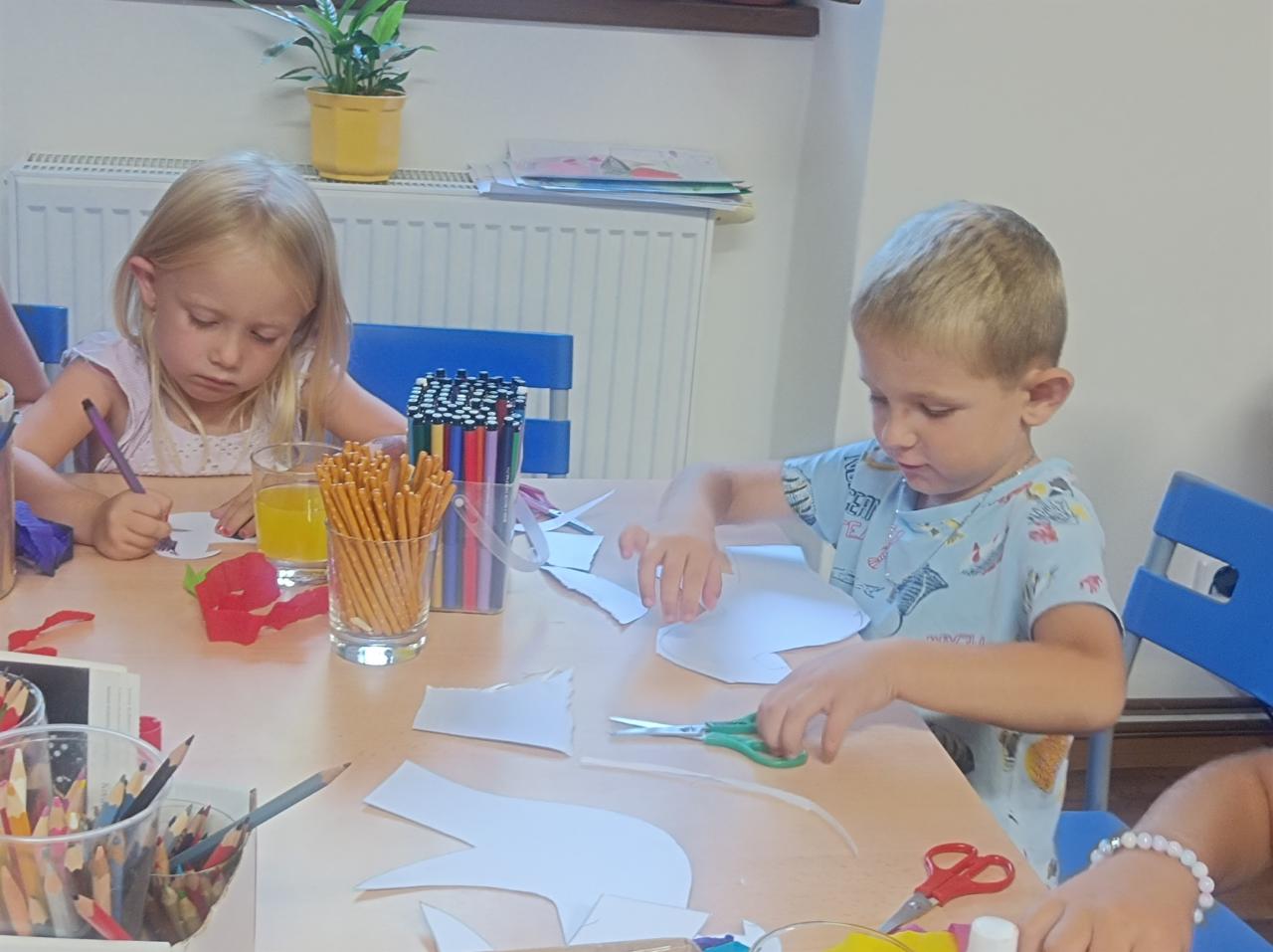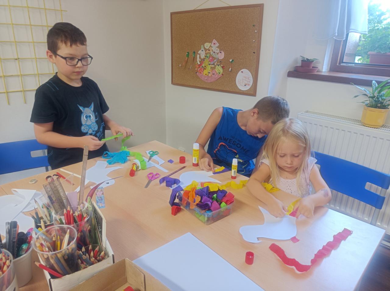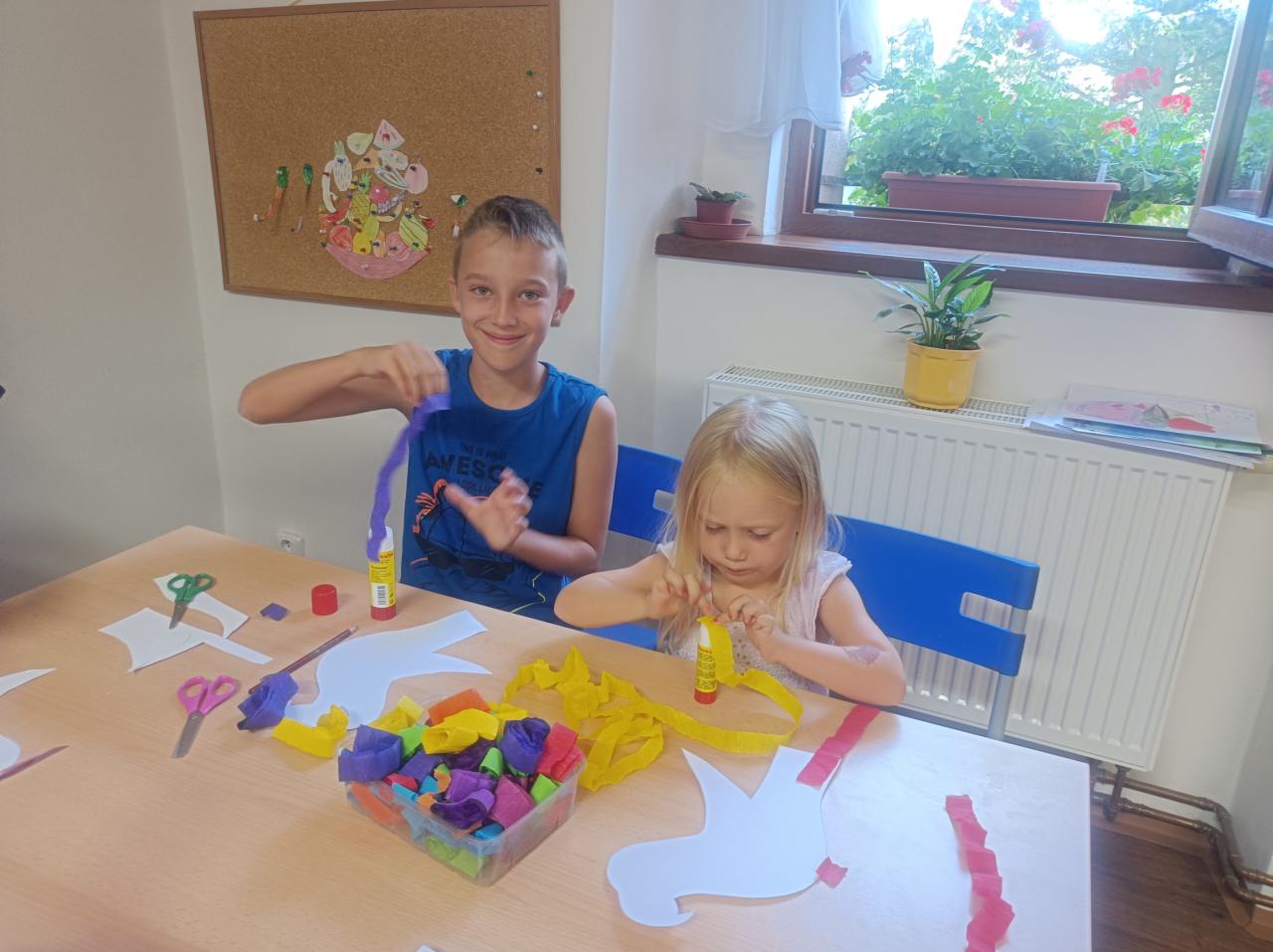 Dnes si děti ze čtvrtky a krepového papíru vyrobily krásného papouška.