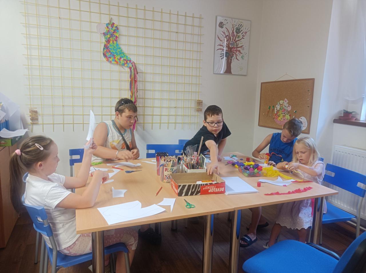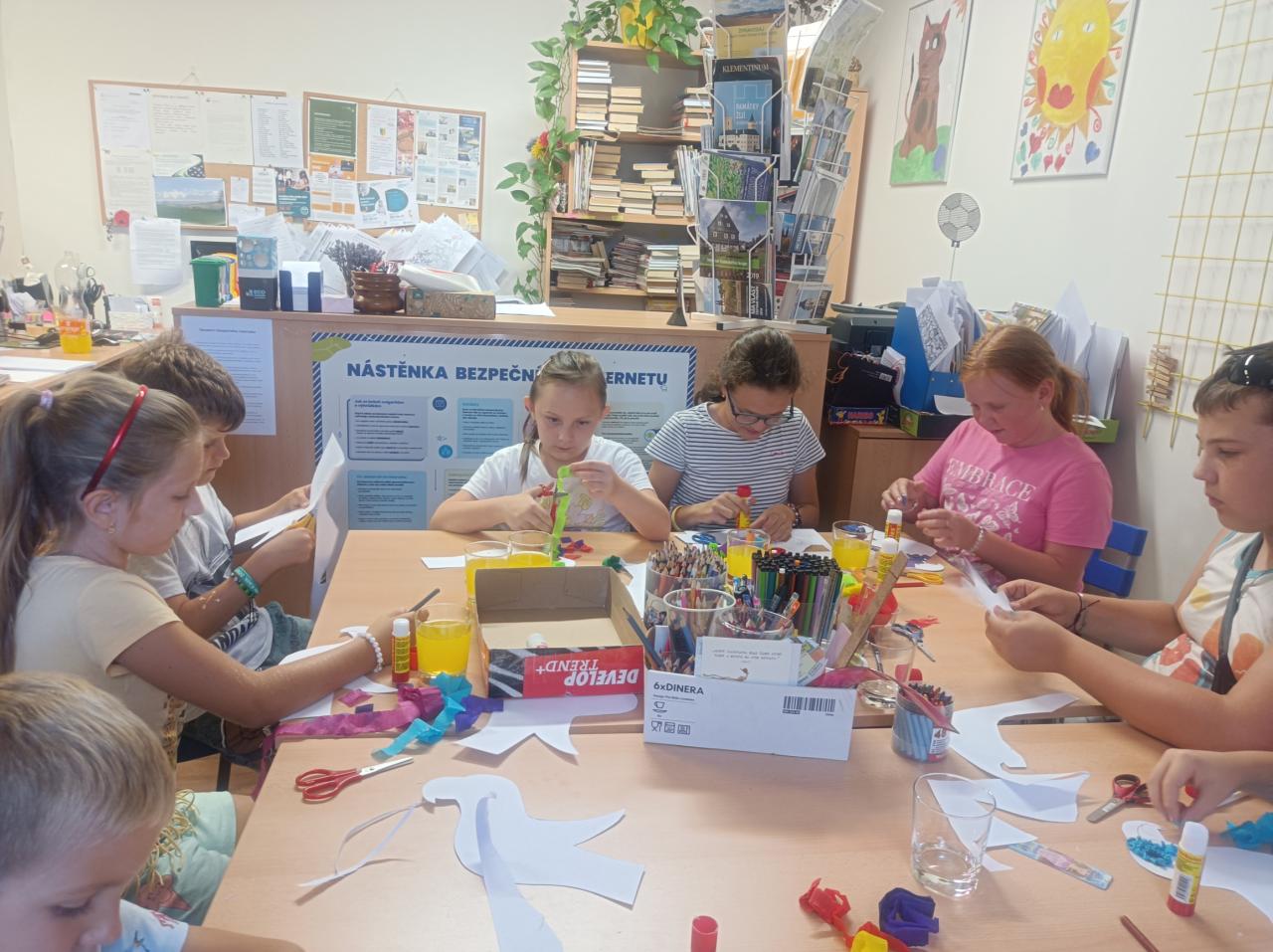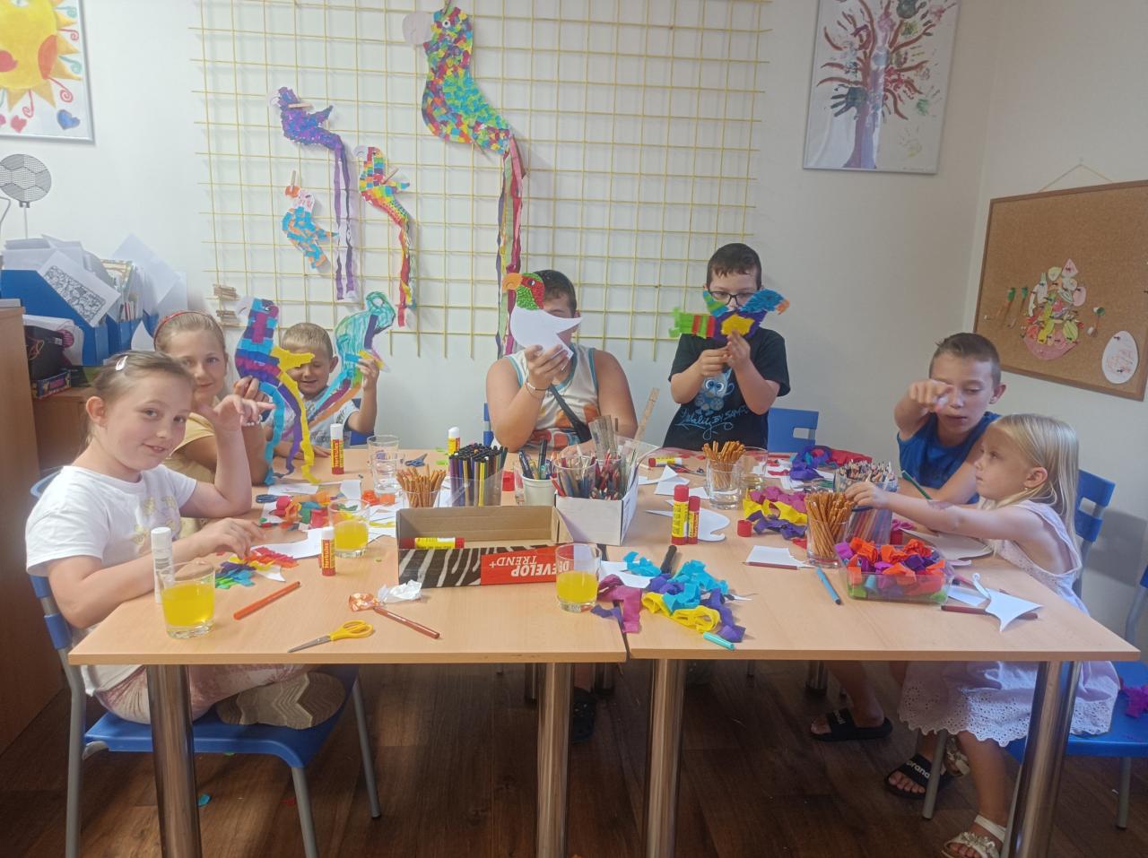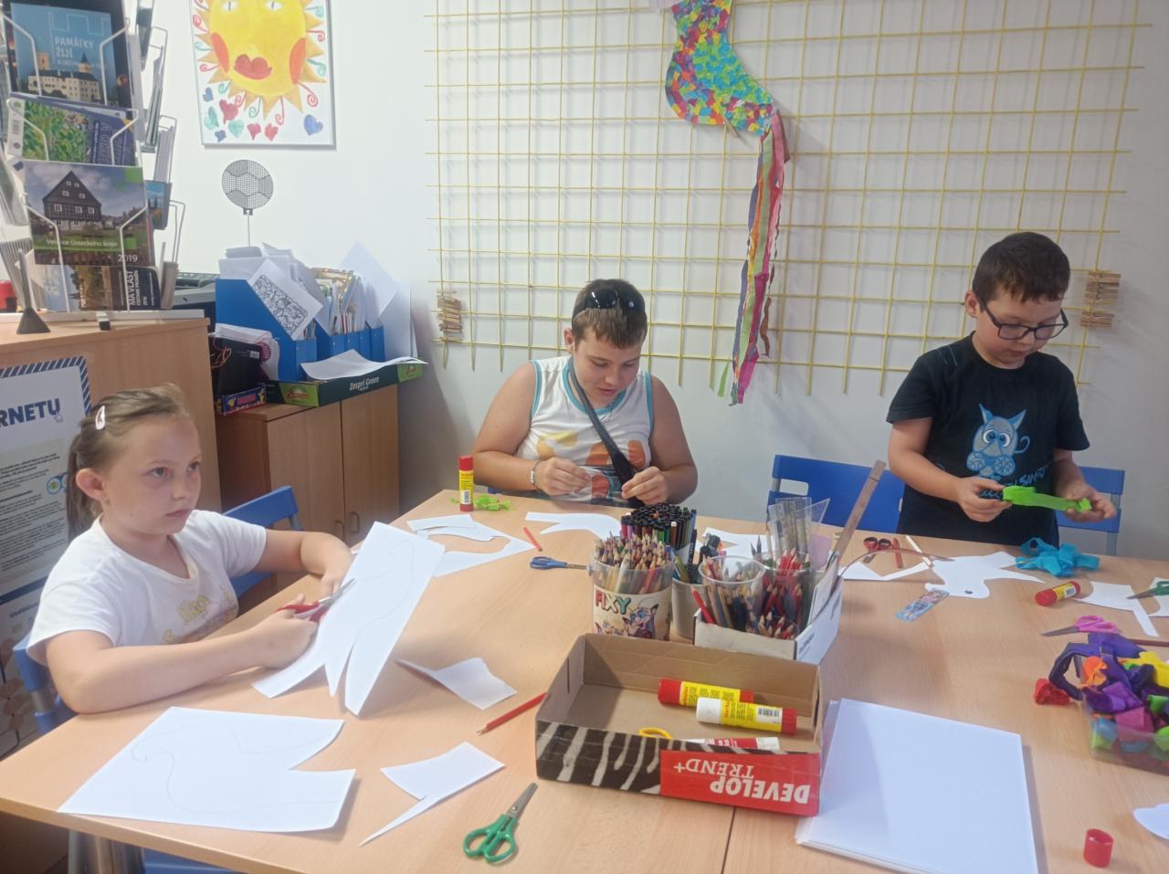 Dnes si děti ze čtvrtky a krepového papíru vyrobily krásného papouška.